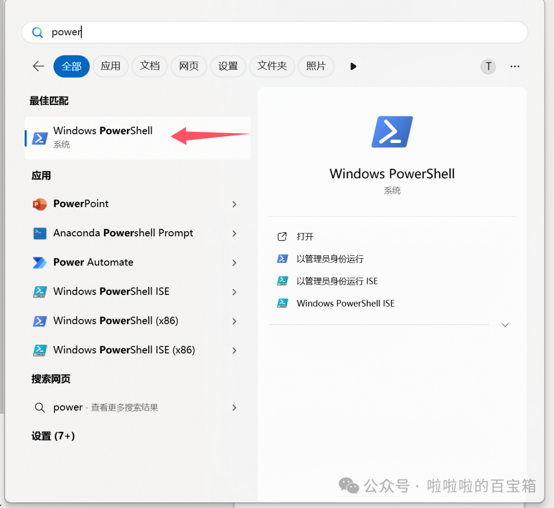 打开开始菜单或者按下Win徽标键,搜索powershell即可找到。
