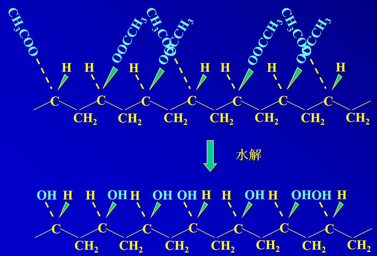 -烯烃不同,聚乙烯醇不形成螺旋链,而形成平面锯齿链构象 -