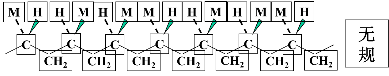- 构造:链中原子的种类和排列、取代基和端基的种类、单体单元的排列顺序、支链的类型和长度