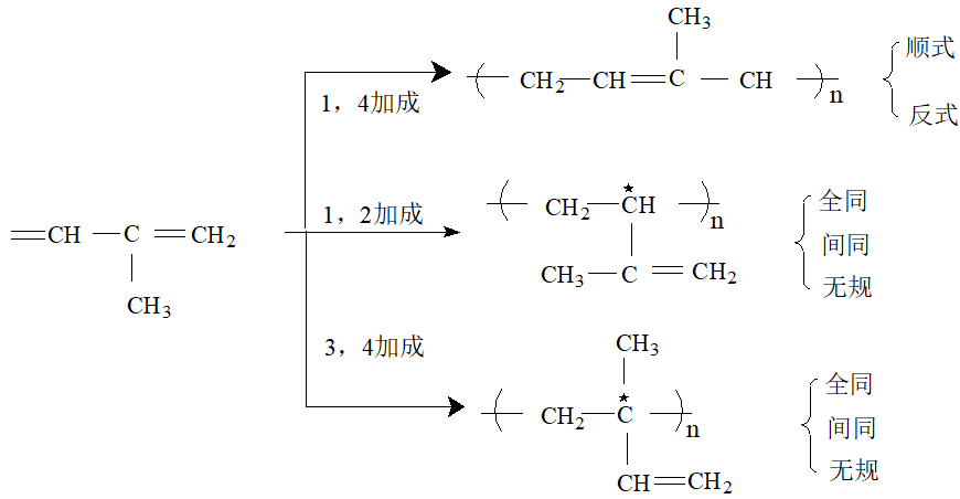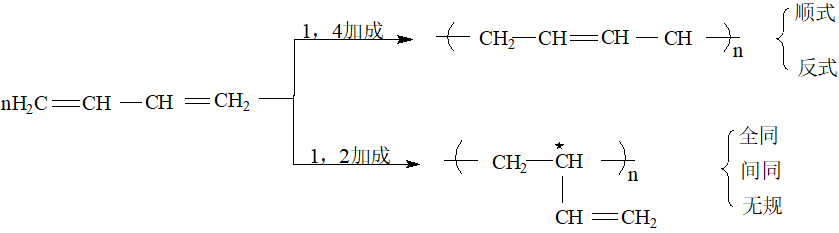 - 聚双烯的加聚方式(可能有顺反异构、旋光异构):
