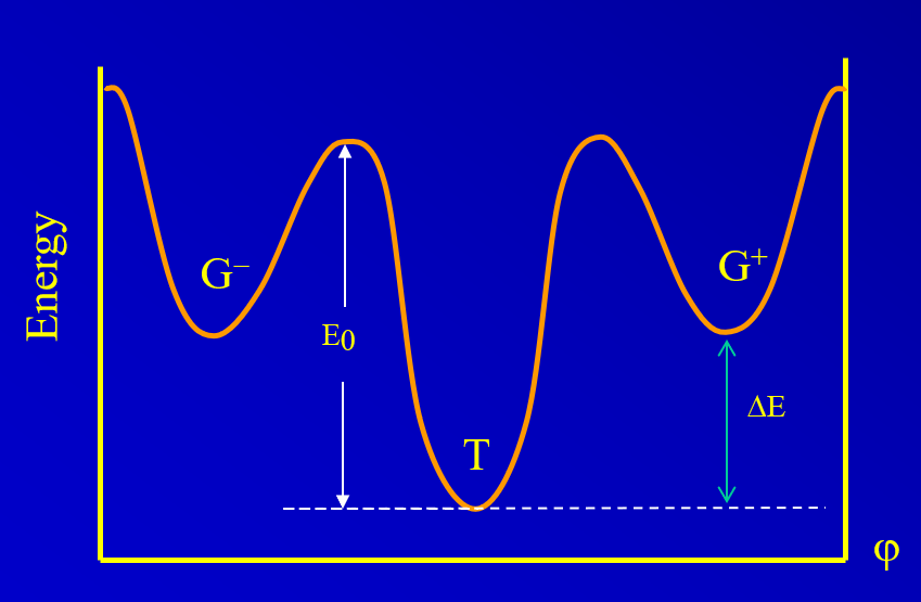 聚合物分子的每个链节只能处于三个能量极小值的状态,忽略了无数中间非稳态的存在,所谓构象只是在T 与G之间的变换