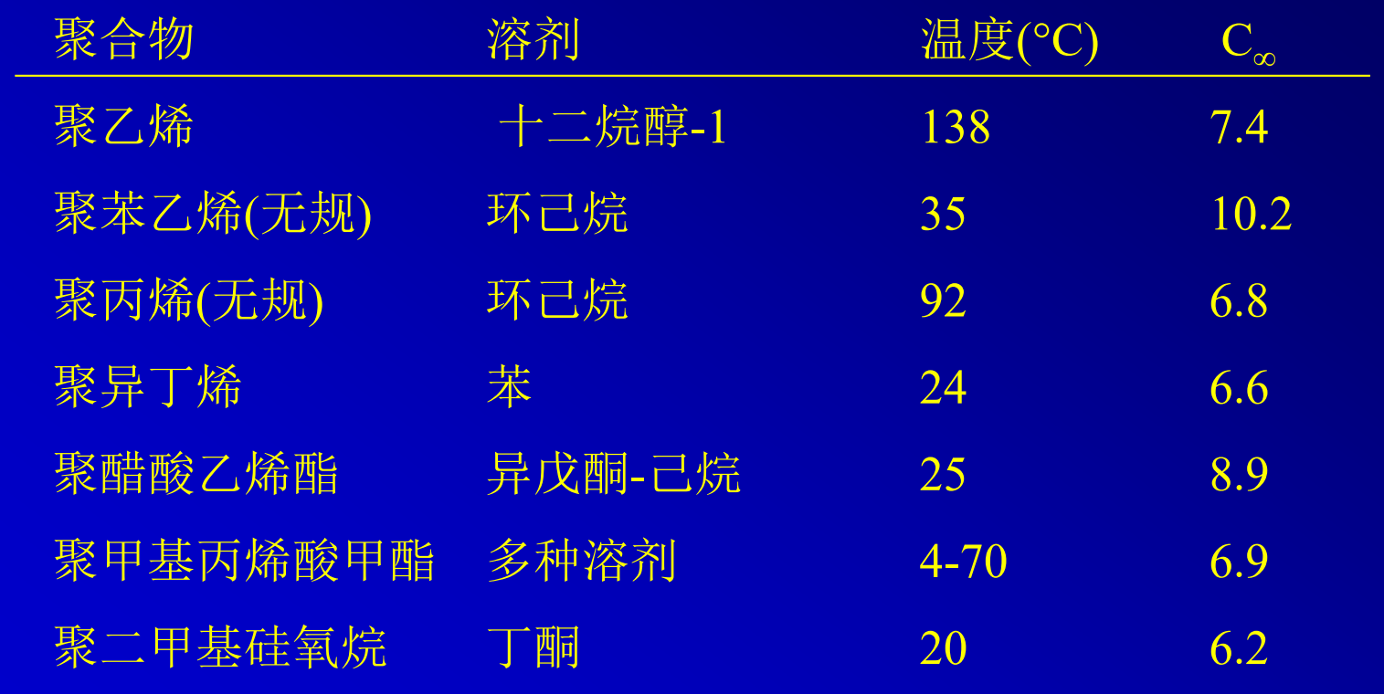 Flory极限特征比是溶剂和温度的函数