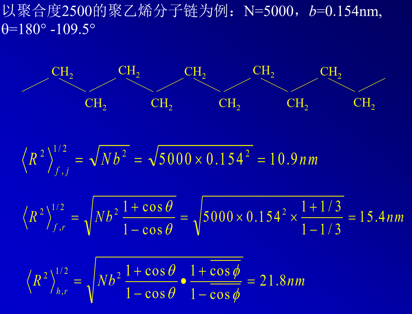 ¶自由旋转链——高分子链由N个长度为b的链节组成,固定键角,自由旋转
