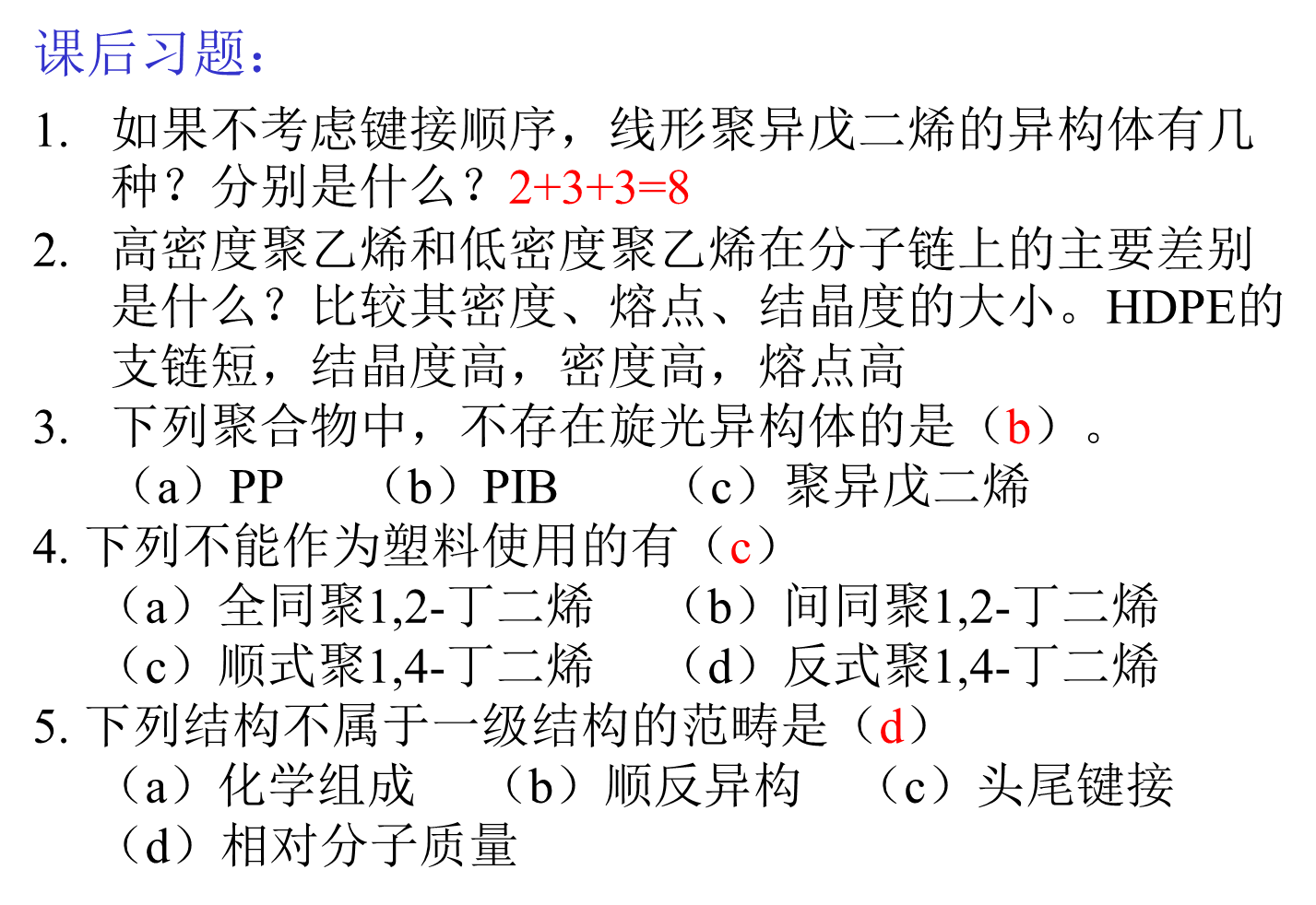 - 由于高分子链内和链间存在内消旋和外消旋作用,即使全同立构聚丙烯也没有旋光性