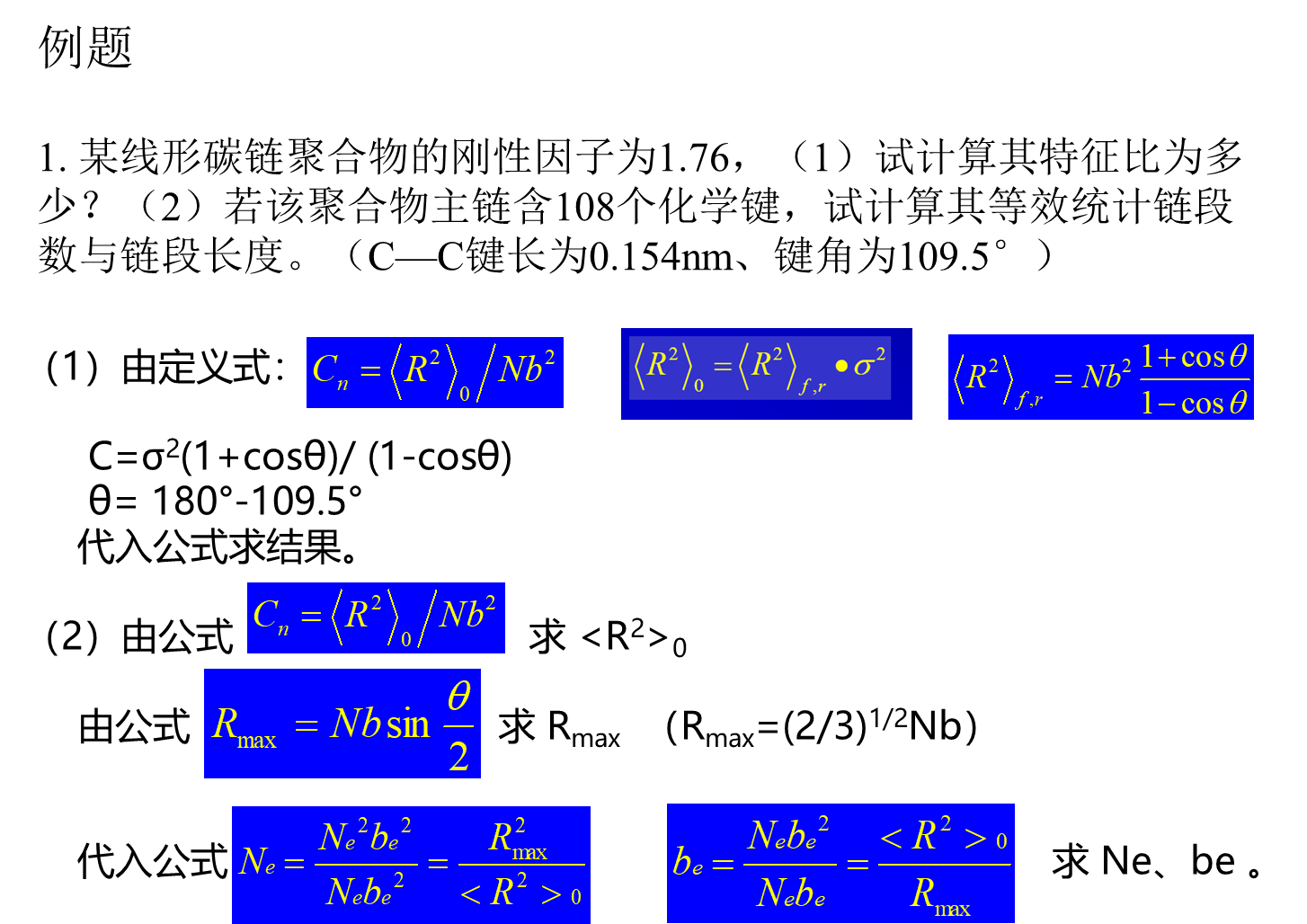 - 高分子链内旋转受阻程度越大,其均方末端距越大