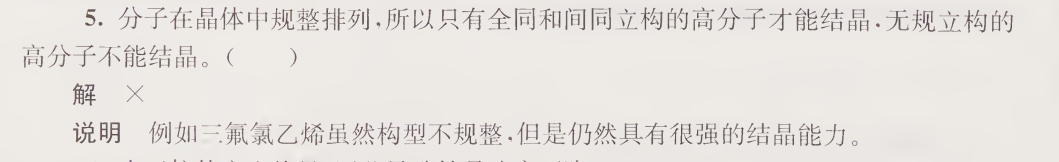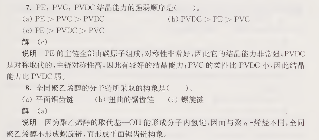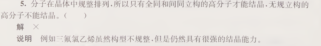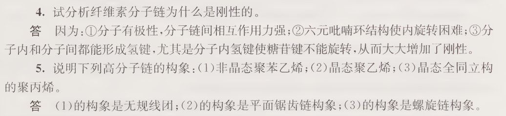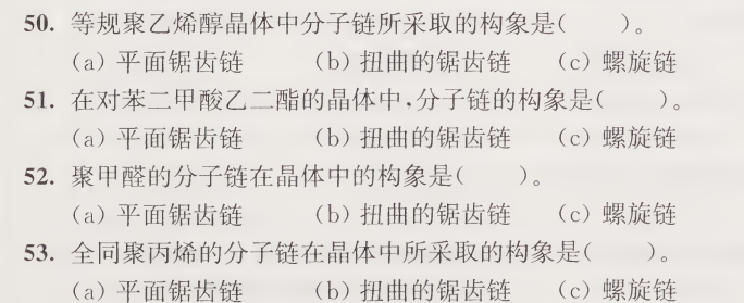 - 结晶性高聚物的晶区中存在的分子链构象可以是螺旋形、锯齿形