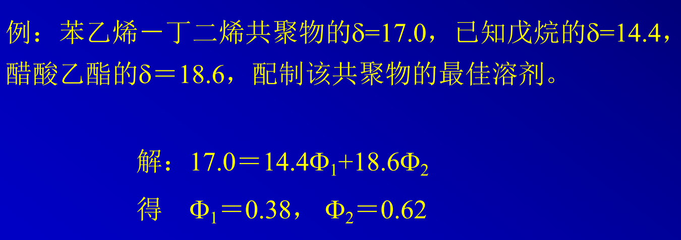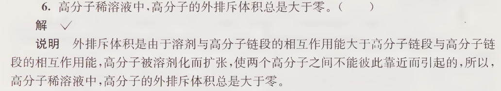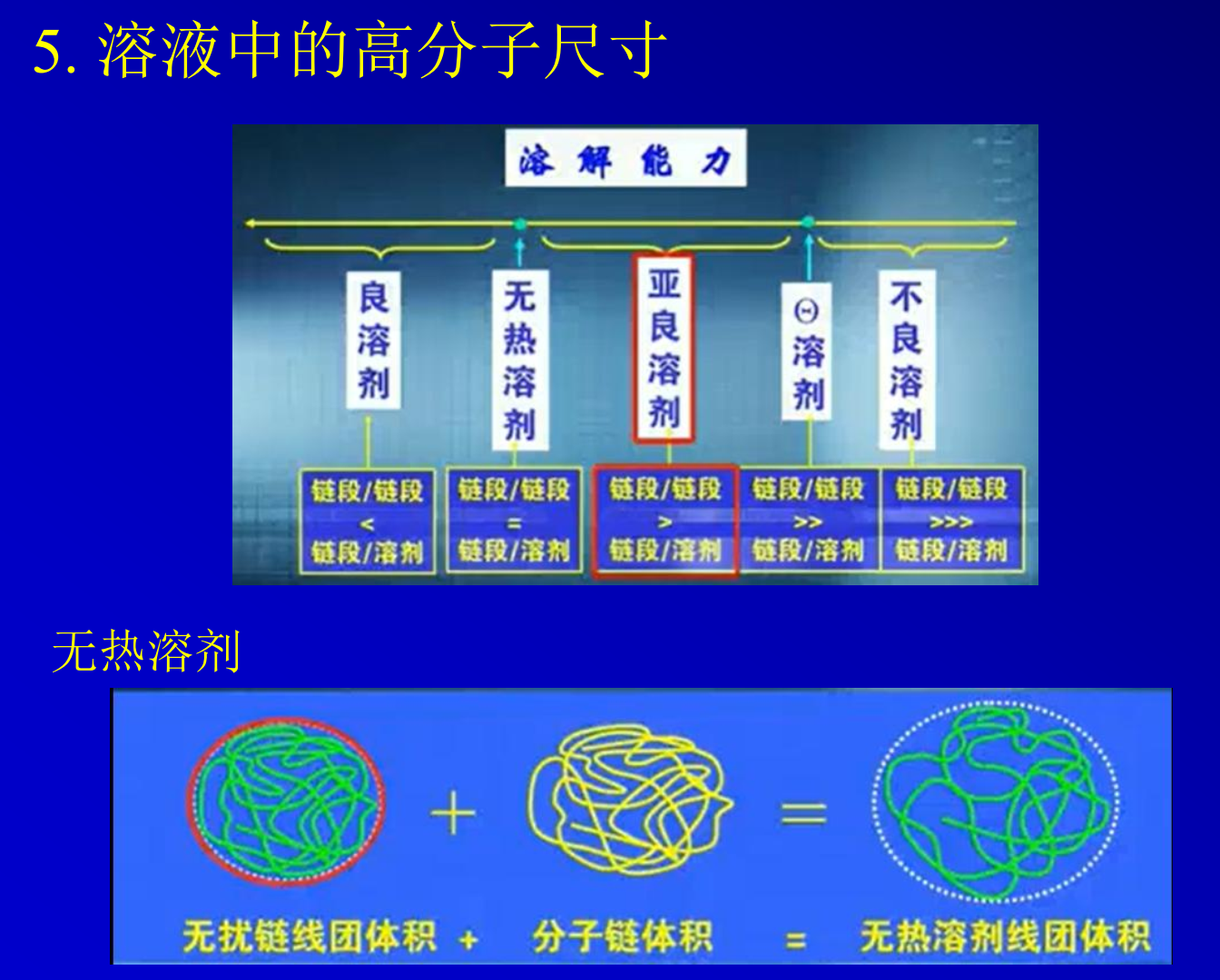 - 在良溶剂中高分子链段与溶剂分子的相互作用能大于高分子链段之间的相互作用能