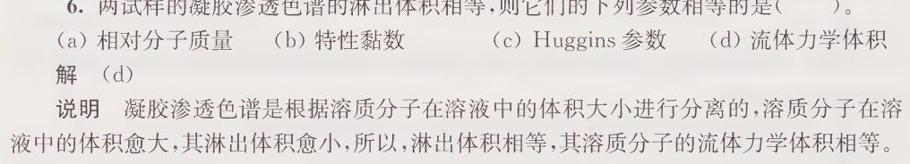 - 凝胶渗透色谱的淋出体积愈大,该级分的相对分子质量愈小