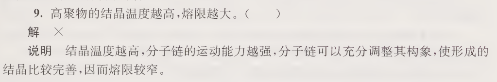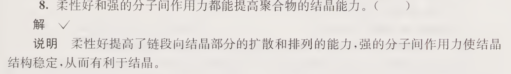 高分子的结晶能力随着柔顺性的增大而增大(错),太柔了反而不能结晶