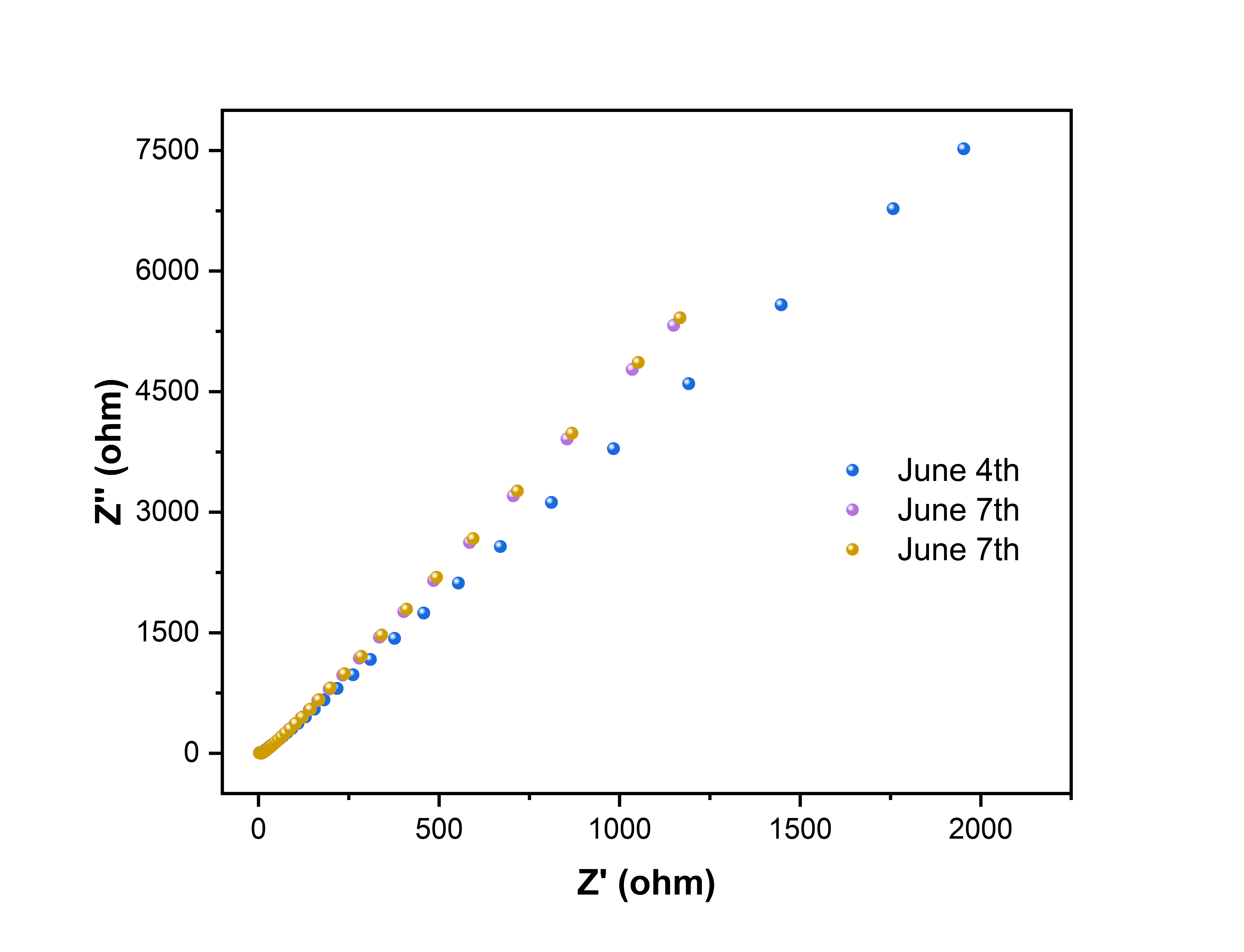 6月6日晚上,测了溴掺杂和氯掺杂的两个样品的阻抗谱,前者偏小,后者偏大,待我稍微分析一下