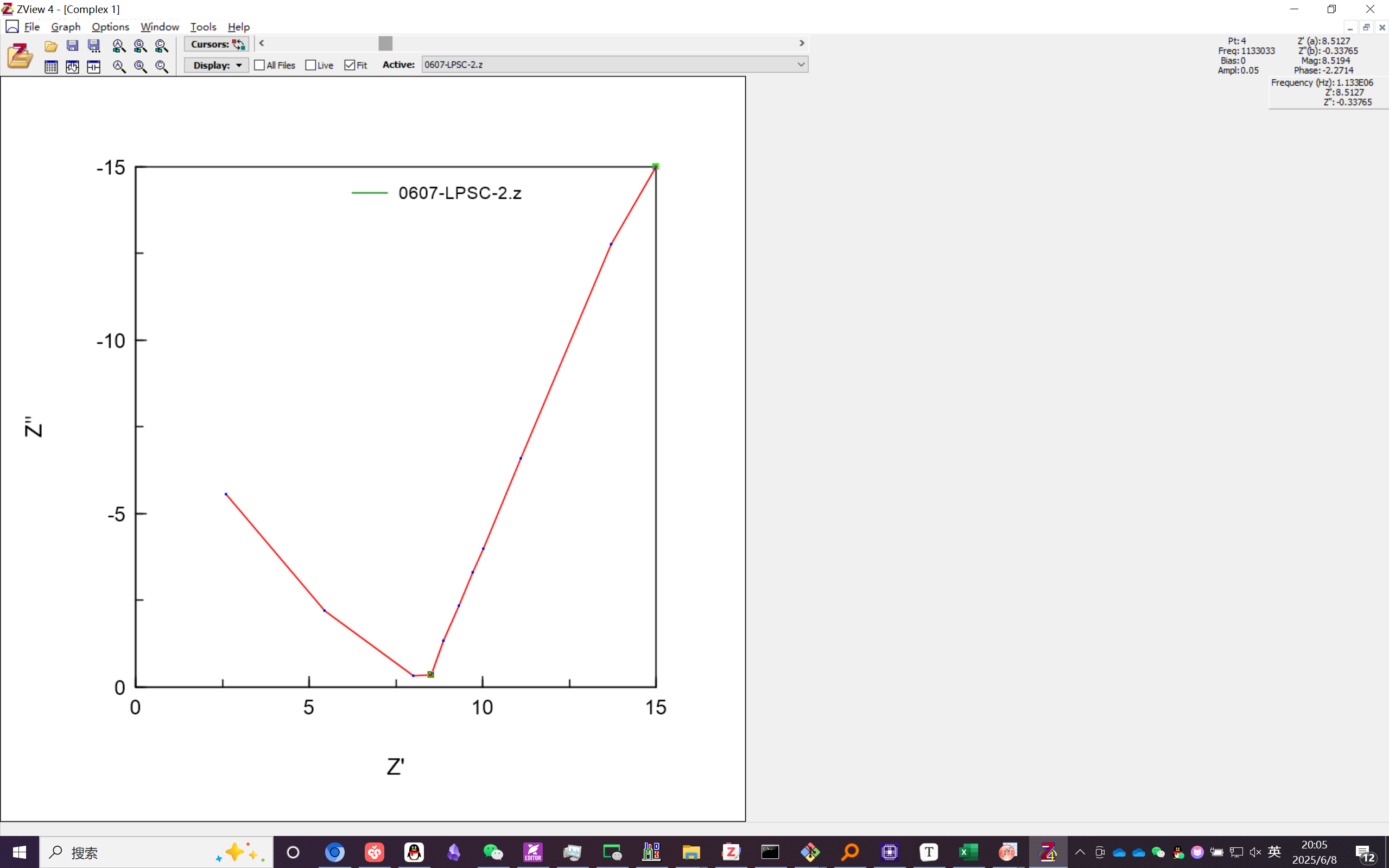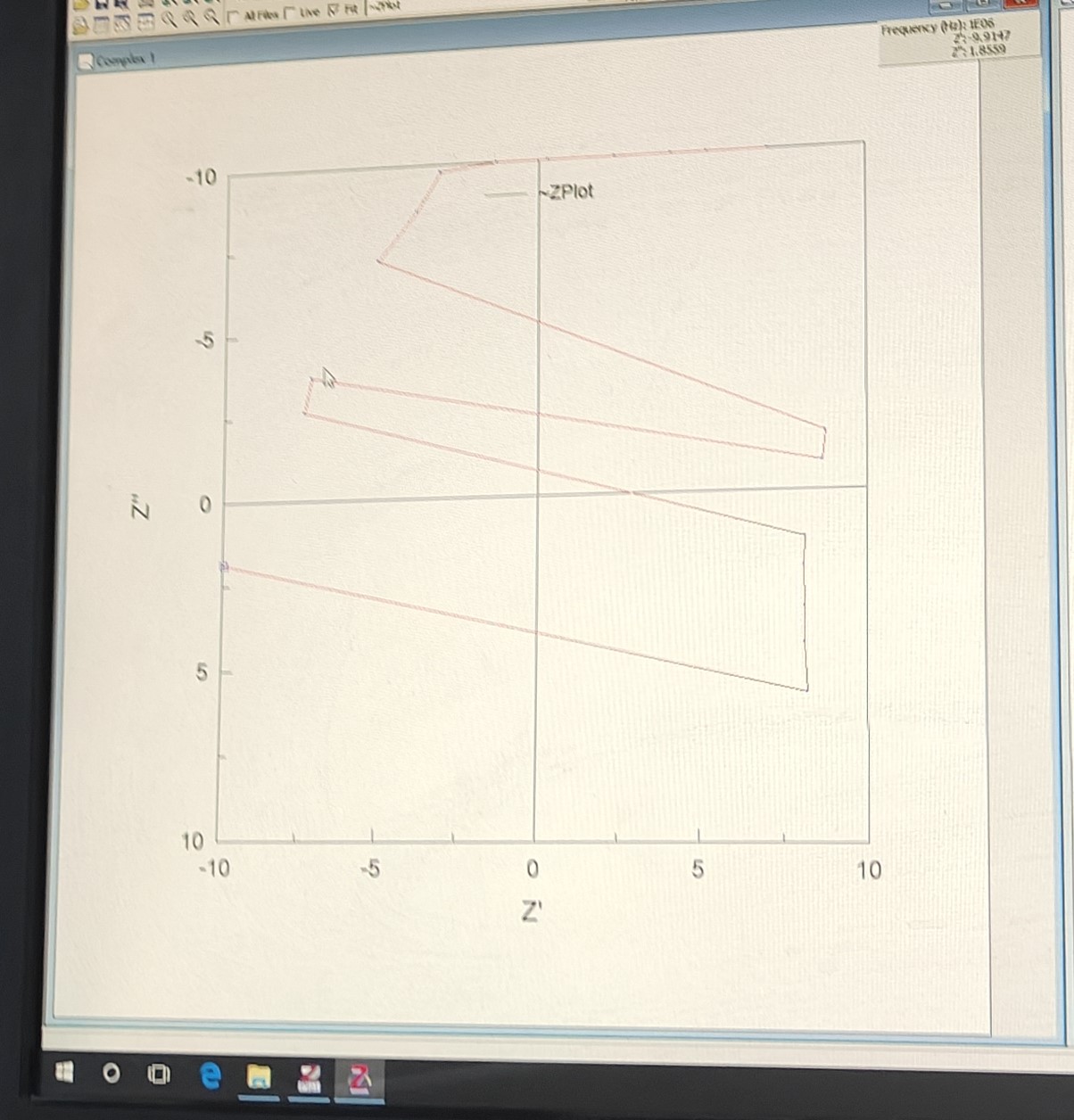 如图是我合成的材料的局部的阻抗图,很烂,重新测了几次都不对,晚上测一下XRD看看是怎么回事。