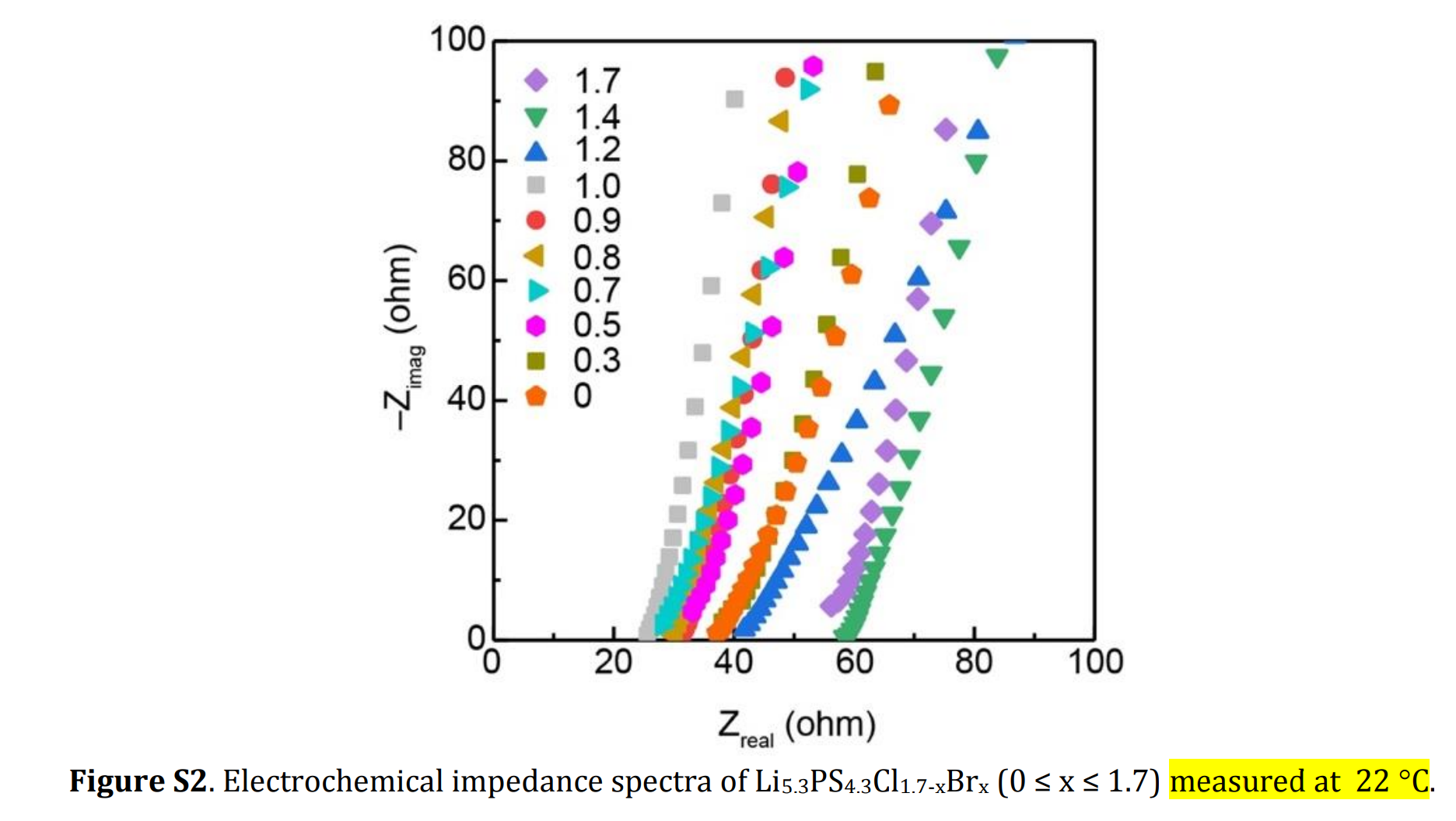 6月4日晚上,测了一下LPSC(x=0.5)的离子电导率,由于我有些心急,未等模具降至室温就测,所以离子电导率有些偏高,稍大于文献