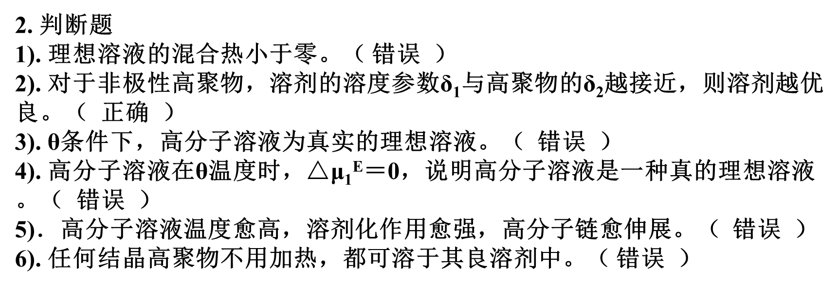 高分子溶液:高聚物以分子状态分散在溶剂中所形成的均相混合物,热力学上稳定的二元或多元体系