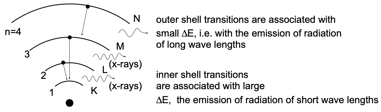 X射线是一种电磁波,由内壳层电子跃迁所得: