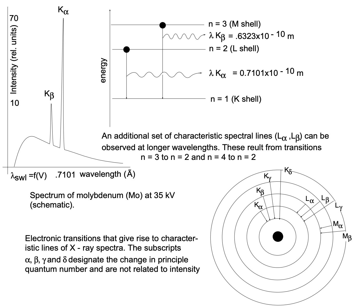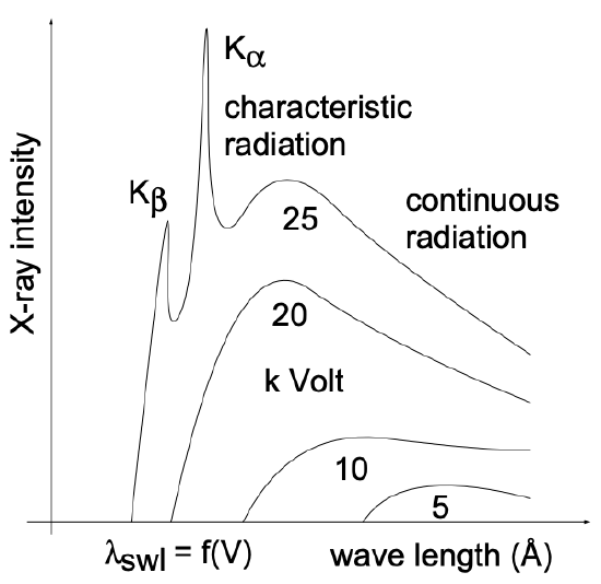 在所得的一系列X射线中,只有满足布拉格条件(波长与晶面间距d匹配)的射线才可用于样品检测,因此需要通过滤光片等手段只保留窄带波长,去除了除 K