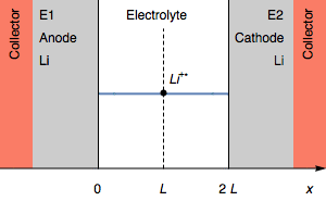 让我们考虑一个由两个锂电极组成的对称电池,两电极间填充含有锂离子的电解质,该电池两端的电位差为零。若施加正向电流( I>0),那么其中一个电极将成为阳极,其界面会发生如下氧化反应:
