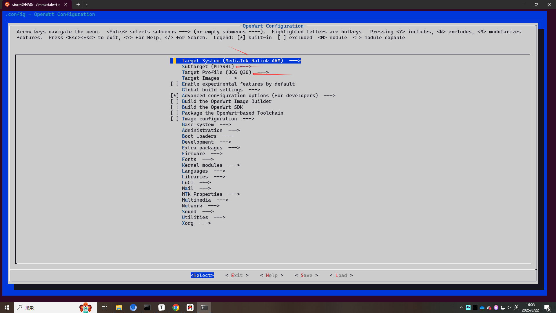 接着cp -f defconfig/mt7981-ax3000.config .config拷贝配置文件,然后make menuconfig进一步编辑,如下图。