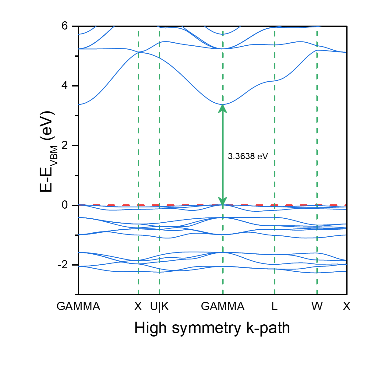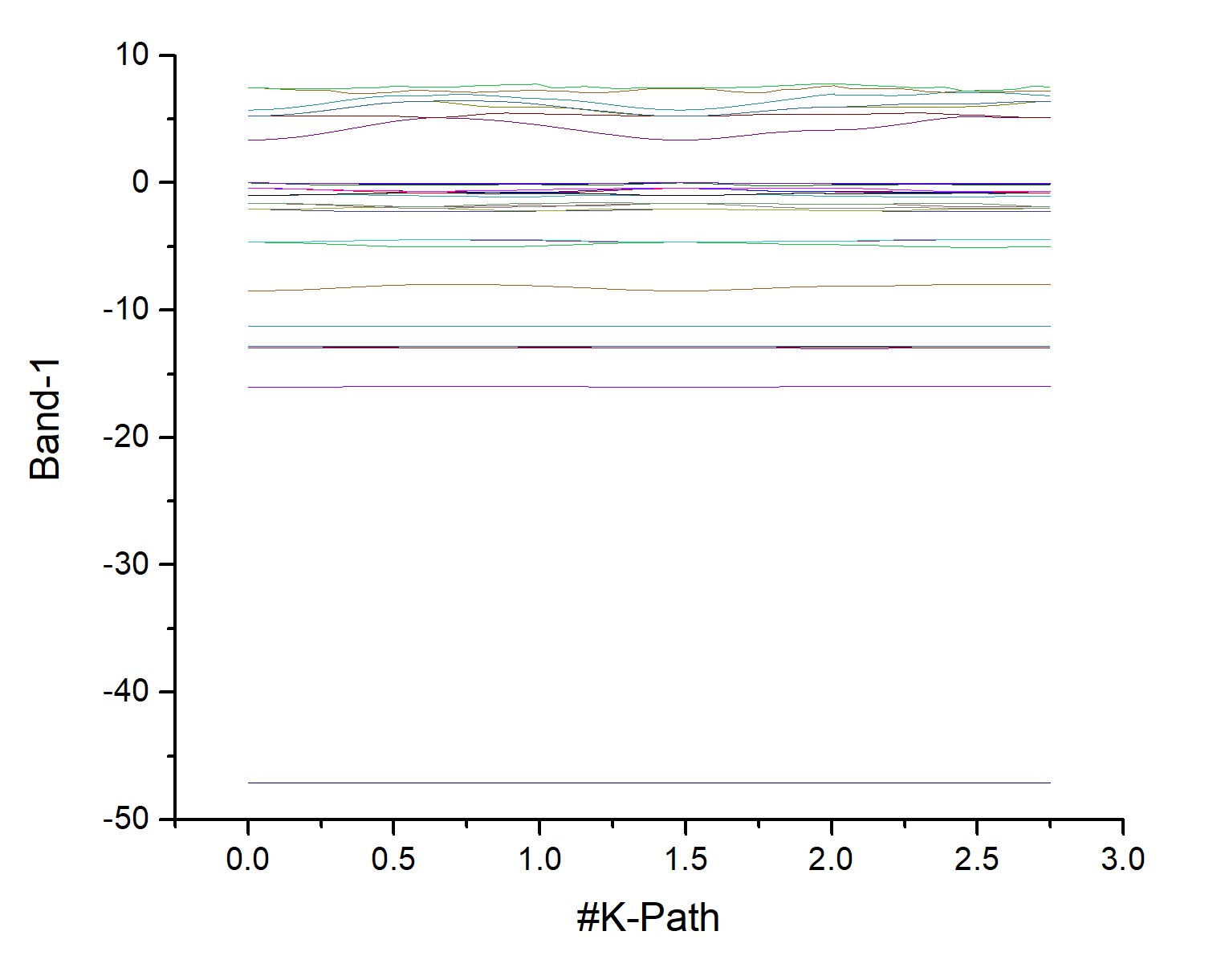 0) Quit 9) Back ------------>> 211 -->> (01) Reading Input Parameters From INCAR File. +---------------------------------------------------------------+ | >>> The Fermi Energy will be set to zero eV <<< | +---------------------------------------------------------------+ -->> (02) Reading Fermi-Energy from DOSCAR File. -->> (03) Reading Energy-Levels From EIGENVAL File. -->> (04) Reading K-Path From KPOINTS File. -->> (05) Written KLABELS File. +---------------------------- Tip ------------------------------+ |If You Want to Get Fine Band Structrue by Interpolating Method.| | You CAN set GET_INTERPOLATED_DATA = .TRUE. in ~/.vaspkit file.| +---------------------------------------------------------------+ -->> (06) Written BAND.dat File. -->> (07) Written REFORMATTED_BAND.dat File. -->> (08) Written KLINES.dat File. -->> (09) Written BAND_GAP File.